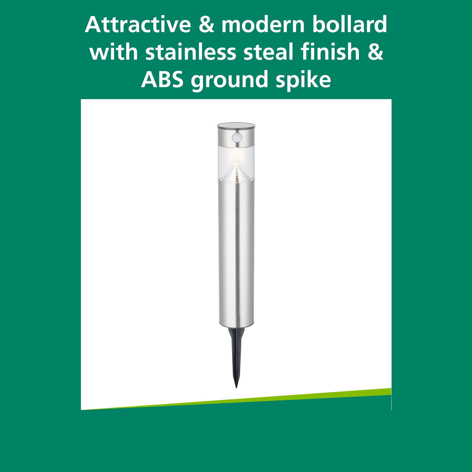 - Attractive & modern bollard with stainless steal finish and ABS ground spike.