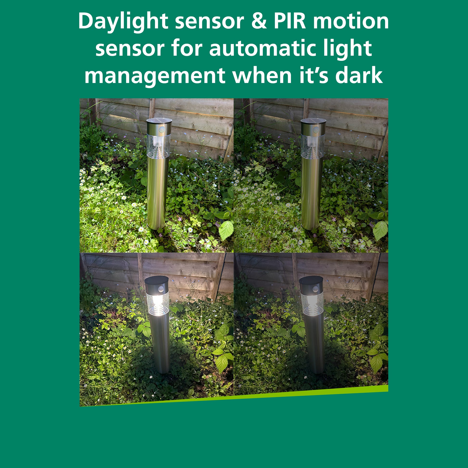 - Integrated PIR motion sensor and daylight sensor - Automatic light management, automatically lighting up when it's dark after motion detection.