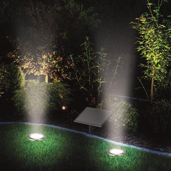 - High quality inground solar lights in a stainless steel and ABS housing with external solar panel.
